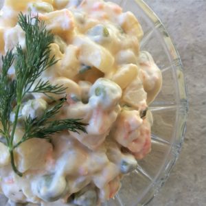 Βάζετε τα βρασμένα λαχανικά σε ένα μπολ, προσθέτετε τη μαγιονέζα, το αγγουράκι τουρσί και το μαϊντανό και αλατοπιπερώνετε.
