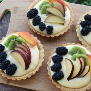 Τέλος βάζουμε πάνω στην κρέμα τα αγαπημένα μας φρέσκα φρούτα.